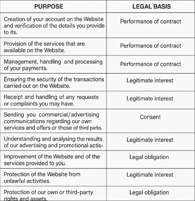 7. PURPOSES AND LEGAL BASES OF PROCESSING